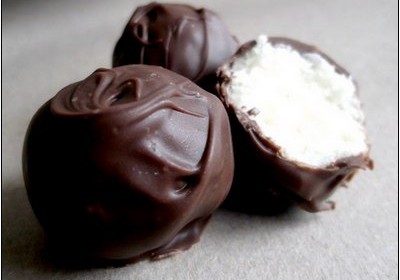 Потом растопить шоколад и возместить им затвердевшие кокосовые шарики.
