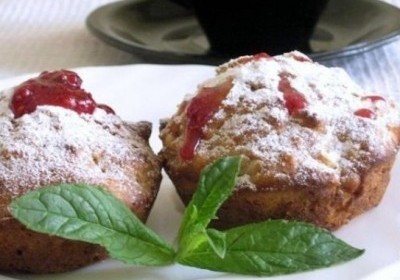 Выпекайте в формочках, наполнив их на две трети, 20-25 минут при температуре 190 градусов. Перед подачей на стол посыпьте сладкой пудрой и украсьте джемом.
