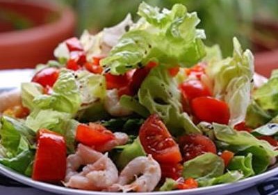 Легкий салат с креветками и помидорами, чрезвычайно нужный и малокалорийный.