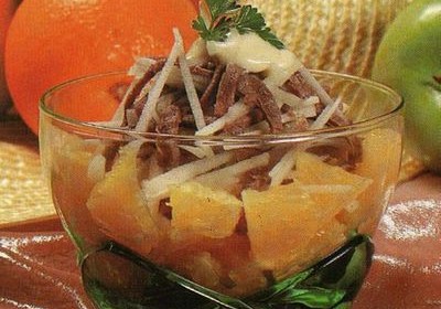 Уникальный мясной салат с апельсинами.Рецепт мясного салата.