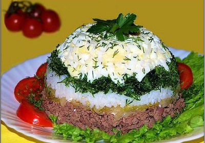 Печеночный салатик может послужить украшением хоть какого торжественного стола.Печеночный салат рецепт: