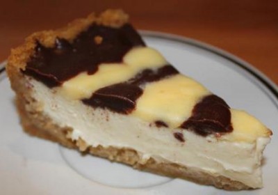 Потом заливаем наш чизкейк шоколадом, можнож полосами, либо спиралью, что бы выходило, белоснежная- черная.