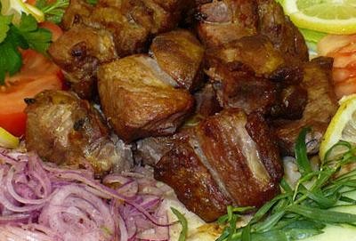 Нанизываем мясо на шпажки и обжариваем на сковороде до готовности.