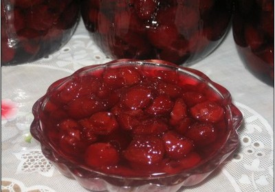 Доставляем сиропу перекипеть и заливаем им ягоды. Ягоды настаиваются 3 часа, потом варенье ставим на огонь и варим вишневое варенье до готовности.
